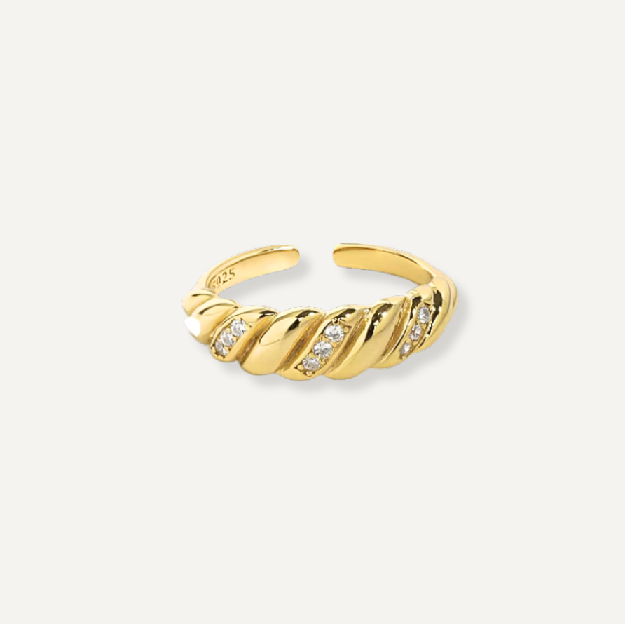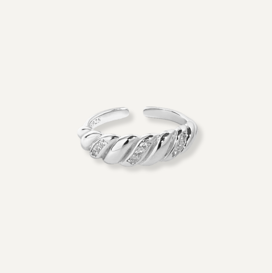 Регулируемата му форма осигурява оптимален комфорт и пасва на всички размери пръсти, а инкрустираните циркони придават блясък, което прави този пръстен идеален за всеки повод - от ежедневно носене до специални събития. Със своя елегантен дизайн и деликатен блясък пръстенът Ines е идеален за тези, които търсят шикозно, изискано бижу.