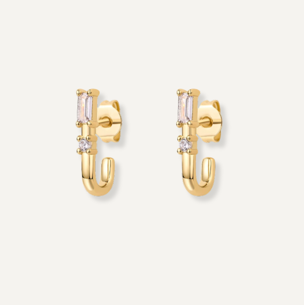 Тези обеци Мария се отличават с уникална форма и модерна визия, идеални за ежедневно носене или специални поводи. Техният дискретен, но завладяващ блясък незабавно озарява всеки тоалет с достъпен лукс.