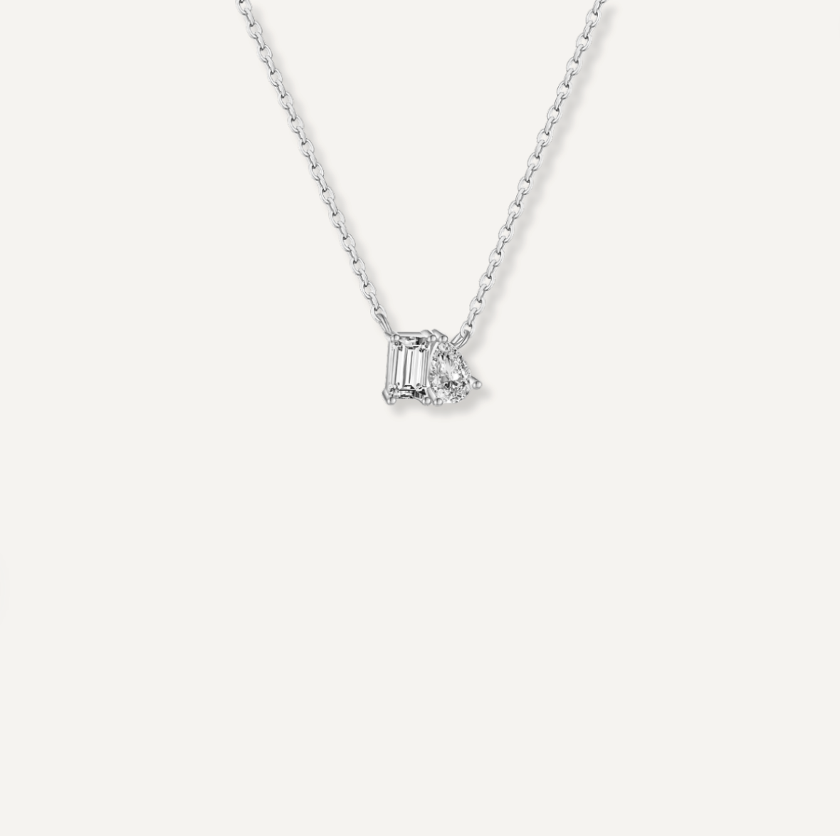 Le collier Aurélia incarne la délicatesse et le raffinement dans leur forme la plus pure. Conçu en argent 925 et sublimé par un plaqué or 18K, il se distingue par un pendentif composé de deux pierres asymétriques : une taille émeraude et une taille poire, offrant un jeu de lumière unique et ultra-féminin.