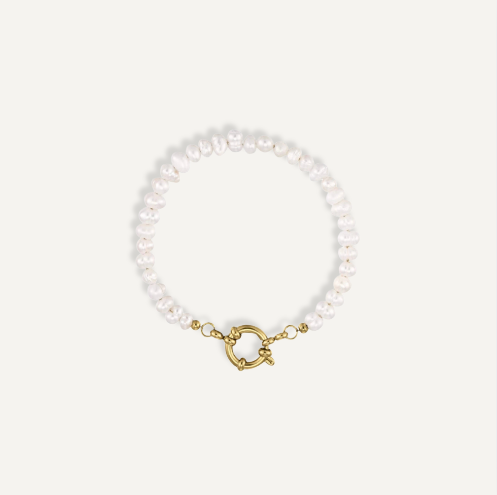Les perles naturelles, connues pour leur beauté authentique et leur éclat doux, apportent un charme discret, tandis que la finition dorée ajoute de la brillance à chaque mouvement. Ce bracelet est un accessoire polyvalent qui se marie parfaitement avec des tenues décontractées comme plus habillées.
