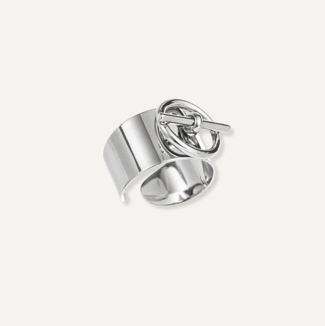 A Romane gyűrű ötvözi a modernitást és a kifinomultságot, így egy merész és elegáns darabot alkot a mindennapi viselethez. A kiváló minőségű rozsdamentes acélból készült és 18 karátos arannyal aranyozott gyűrű kortárs dizájnnal büszkélkedhet, ahol egy széles, sima sáv elegánsan keresztezi a középső sávot, elegáns, kifinomult hatást keltve.