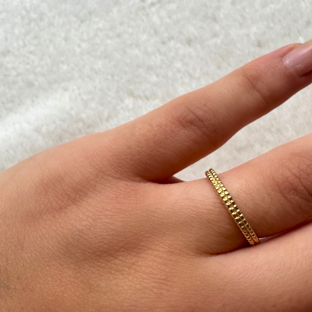 Az Arianne 925-ös sterling ezüstből készült, és úgy tervezték, hogy tartós legyen, miközben kifinomult csillogást biztosít. Az apró, tökéletesen egymás mellé illesztett gyöngyökből álló minimalista kialakítása elegáns, modern megjelenést kölcsönöz neki.