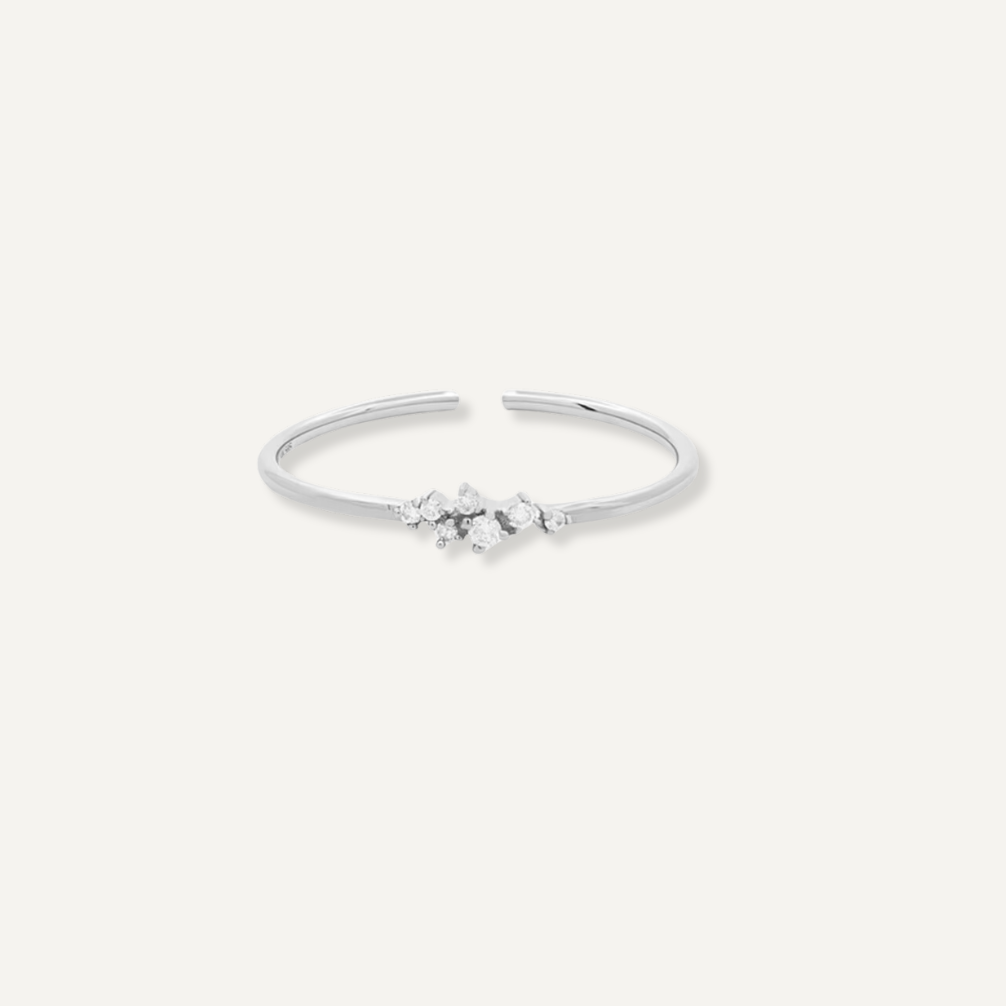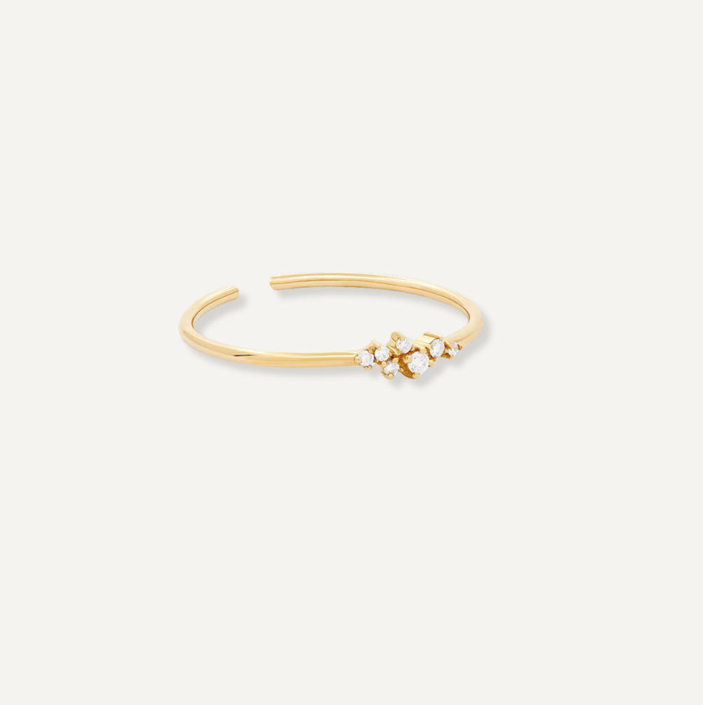 A Carla gyűrű diszkrét, időtlen eleganciát testesít meg modern, minimalista dizájnnal. A 925-ös sterling ezüstből készült és 18 karátos arannyal aranyozott, finom gyűrű elegáns kialakítású, amelyet csillogó cirkonok díszítenek. Minden egyes cirkon megragadja a fényt, kifinomult csillogást és egy csipetnyi csillogást kölcsönözve a kezednek.