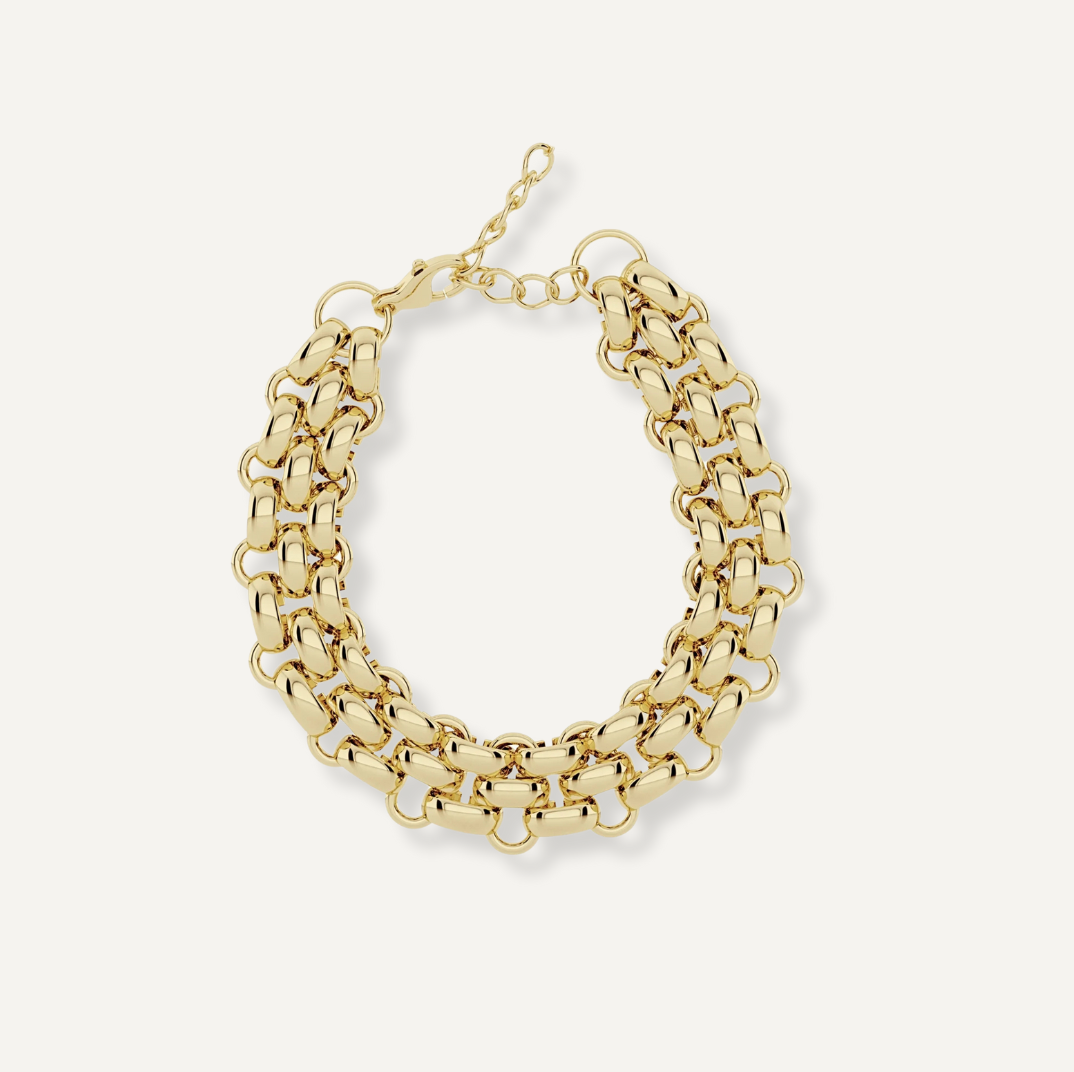 Az Émilie karkötő a tökéletes kiegészítő, amely egy csipetnyi luxussal és kifinomultsággal gazdagítja megjelenését. A rozsdamentes acélból készült és 18 karátos arannyal aranyozott karkötő a minőséget és az időtlen szépséget ötvözi. Az egymásba fonódó láncszemek modern kialakítása merész, elegáns vizuális hatást kelt, amely minden mozdulatnál magára vonja a figyelmet.