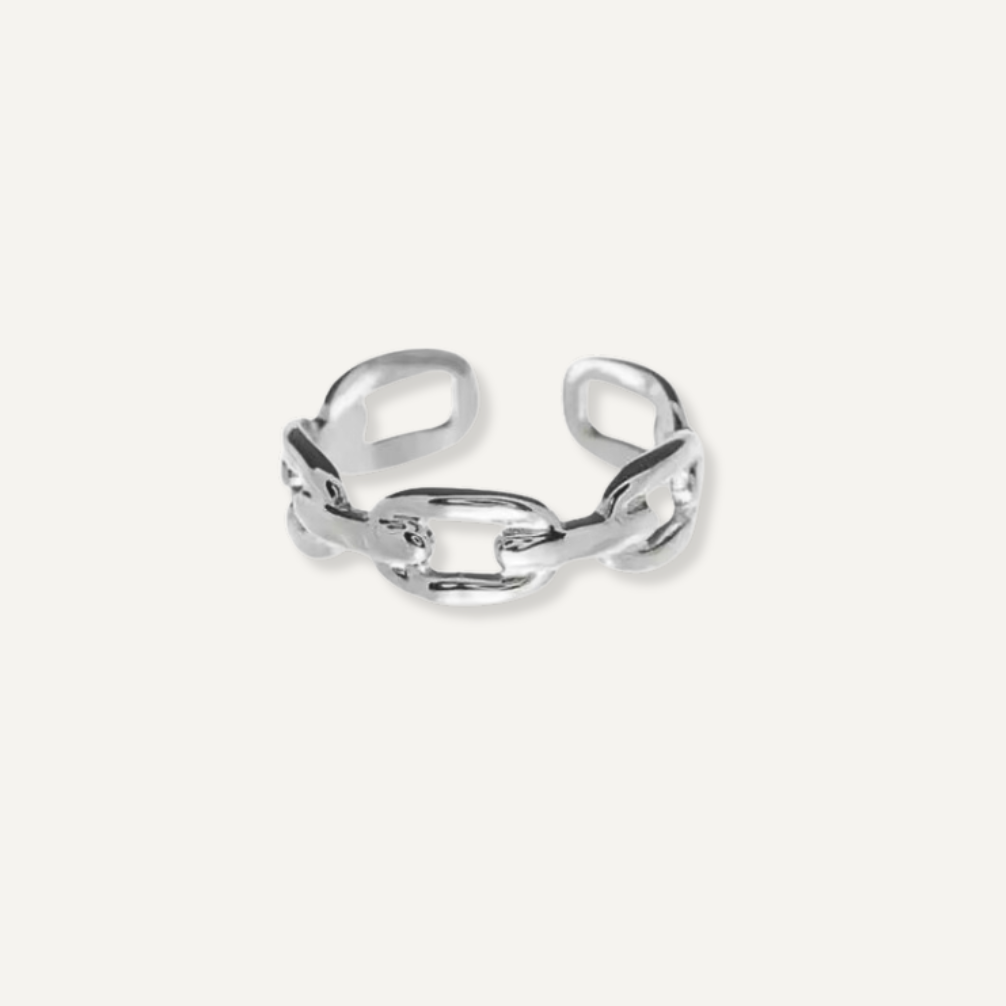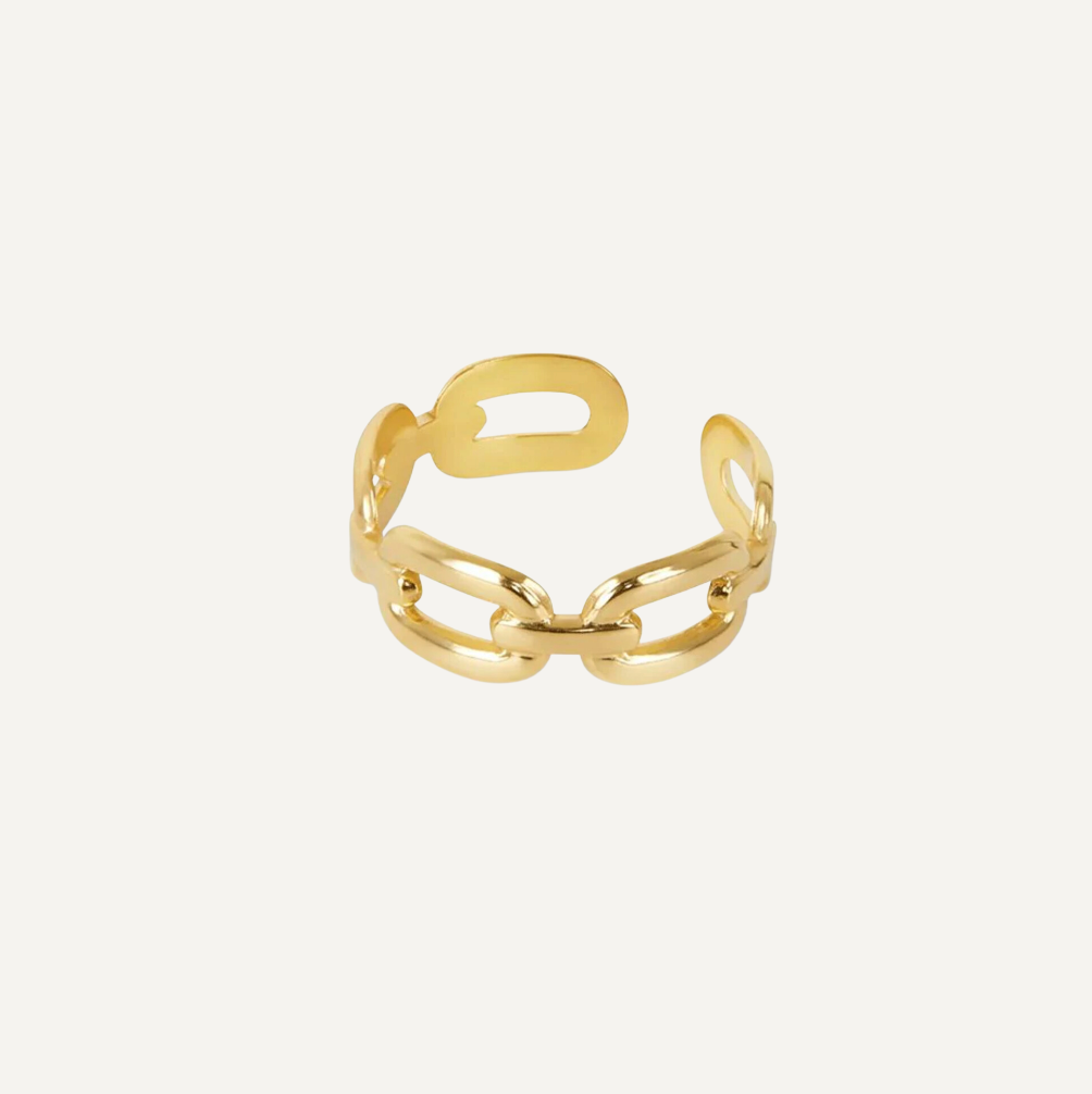 A Miléna gyűrű ötvözi a modern dizájnt a finom eleganciával, ideális azok számára, akik egy kis luxust szeretnének hozzáadni a mindennapi megjelenésükhöz. A rozsdamentes acélból készült és 18 karátos arannyal aranyozott, állítható gyűrű merész sziluettje egymásba kapcsolódó láncszemekből áll, amelyek finoman megmunkált láncreakciót hoznak létre. A láncszemeket gondosan úgy tervezték, hogy ragyogó fényt nyújtsanak, ugyanakkor egyszerűek és kifinomultak maradjanak.
